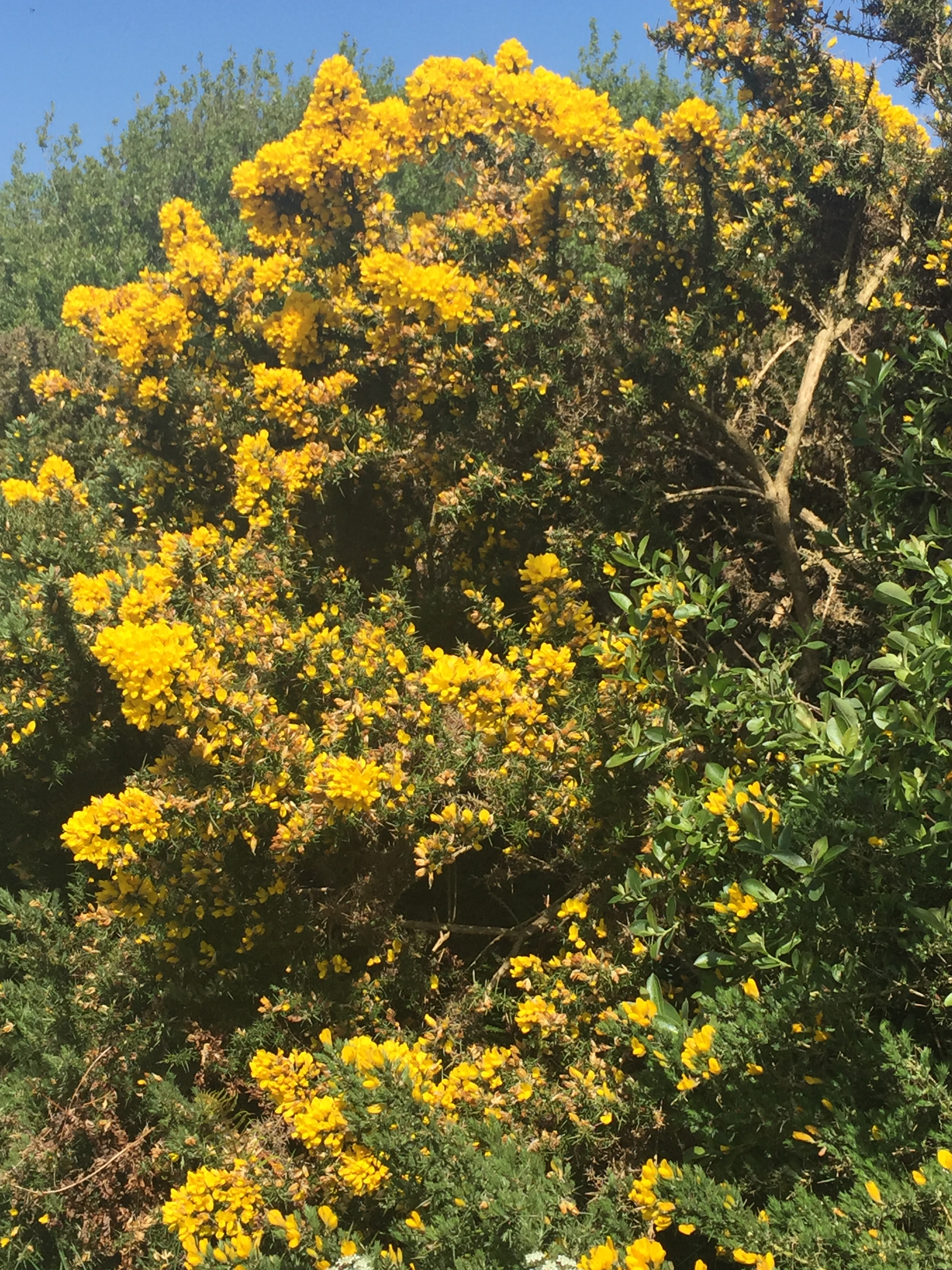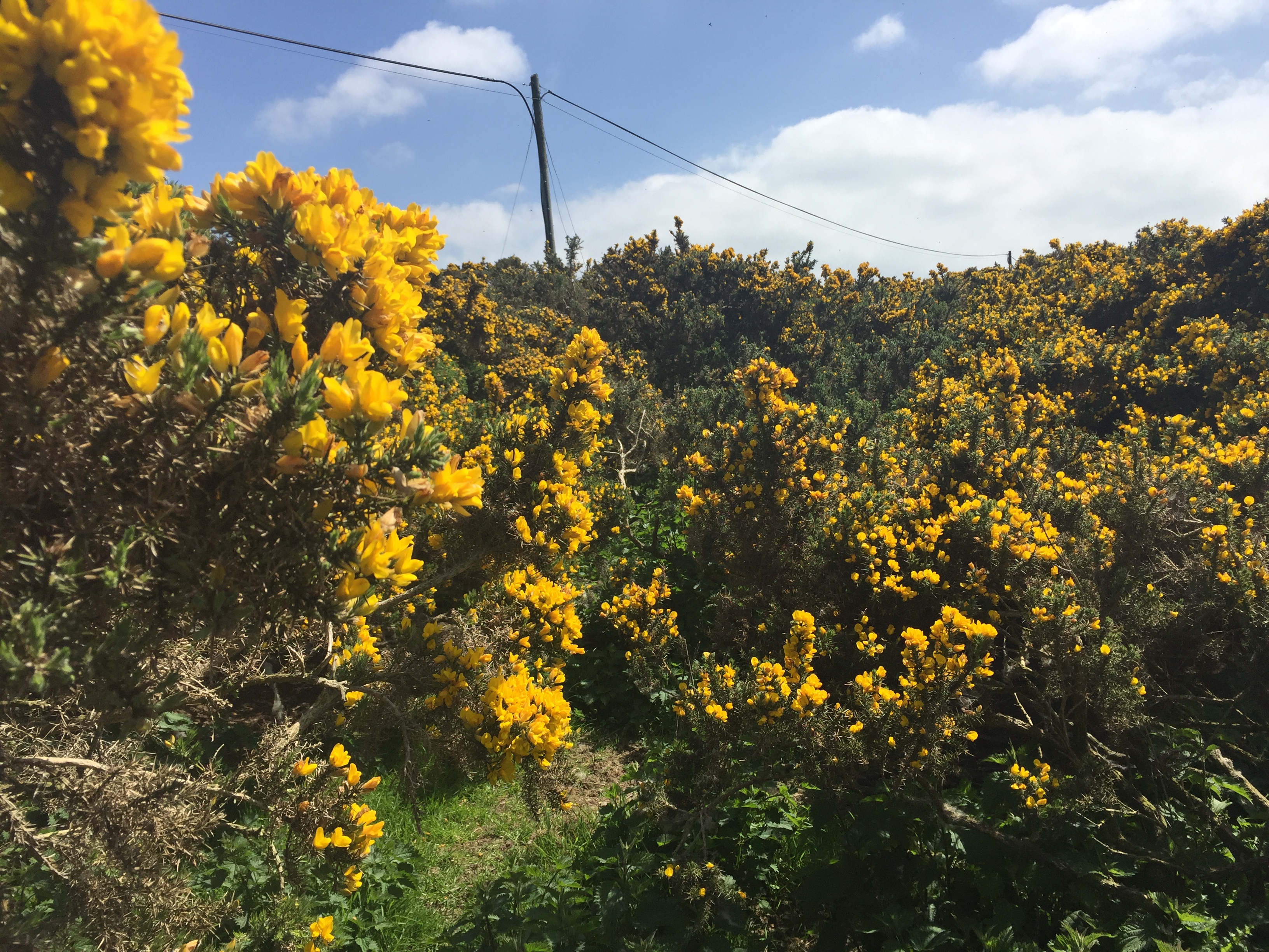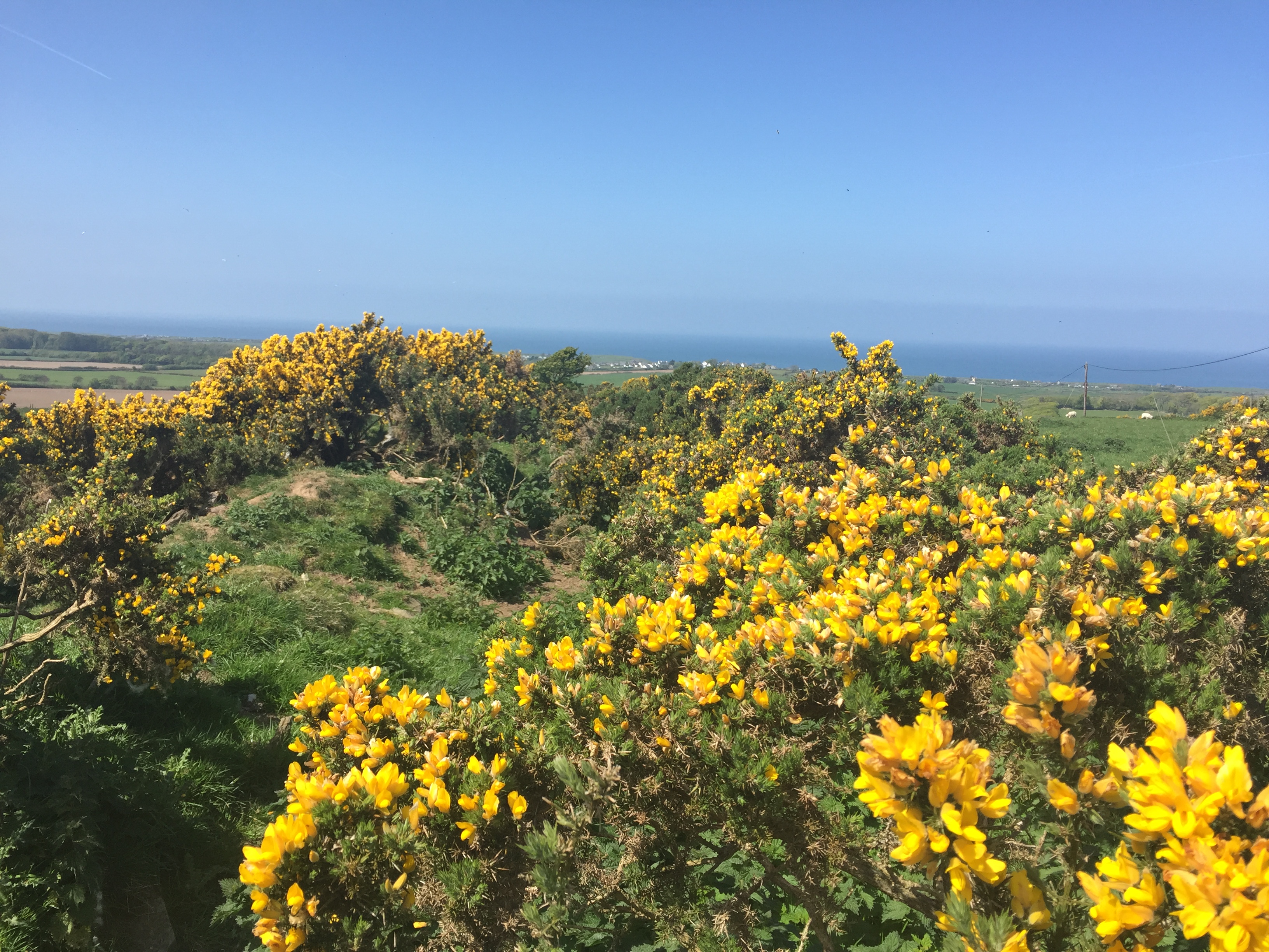 Doedda’ nhw ddim yno ar ben eu hunain gan fod Pen Foel yn le poblogaidd i bobl ddod am bicnic, i weld y gromlech hynafol â’r olygfa tuag at y pentref a’r môr tu draw o uchder y bryn. Cafodd Marc a Tom le yn llygaid yr Haul ar ddarn o laswellt wedi ei amgylchynu bron a thwmpathau trwchus o eithin yn eu llawn blodau. Roedd oglau blodau’r eithin yn dew yn yr aer o’u cwmpas a gwres yr Haul yn llethol yng ngorlan y llwyni pigog.